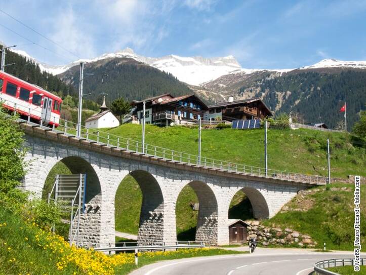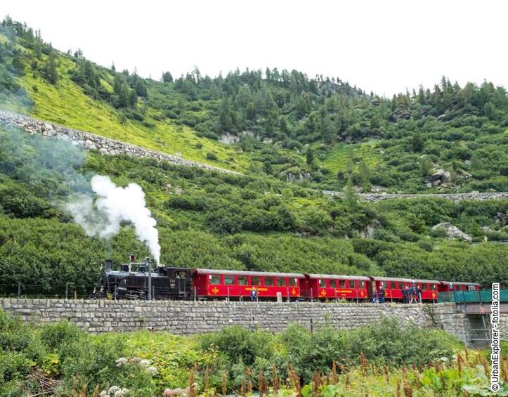 3. Tag: Furka Bahn Nach dem Frühstück lernen Sie das schöne Brig und das kleine Naters bei einer Rundfahrt mit einem kleinen Bähnchen kennen. Danach begeben Sie sich mit der Furka Dampfbahn ganz nostalgisch auf die Reise. Diese wurde in mühevoller Arbeit der Eisenbahnliebhaber wiederbelebt, denn die Strecke war lange Zeit geschlossen. Sie führt paradiesisch durch einen größtenteils unberührten und teilweise sonst nur schwer zugänglichen Teil der Alpen. In ganz gemächlicher Fahrt geht es durch die imposante Bergwelt. Ein unvergessliches Erlebnis. Bevor Sie in den Zug einsteigen bekommen Sie im Rahmen einer kleinen Führung einen Blick hinter die Kulissen der Furka Bahn. Nach einem eindrucksvollen Tag wartet im Hotel das Abendessen auf Sie.
